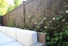 A WELL PLANNED OUTDOOR SPACE SETS UP THE GARDEN. THE CUSTOM STAIN COLOR FOR THE FENCE MATCHES THE TRIM ON THE RESIDENCE CREATING UNITY.